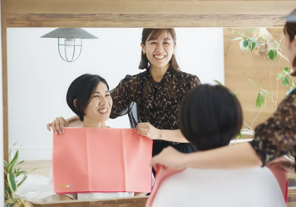 パーソナルカラー診断、顔タイプ診断、骨格診断の3つの診断からお客様の似合う軸を見つけていきます。