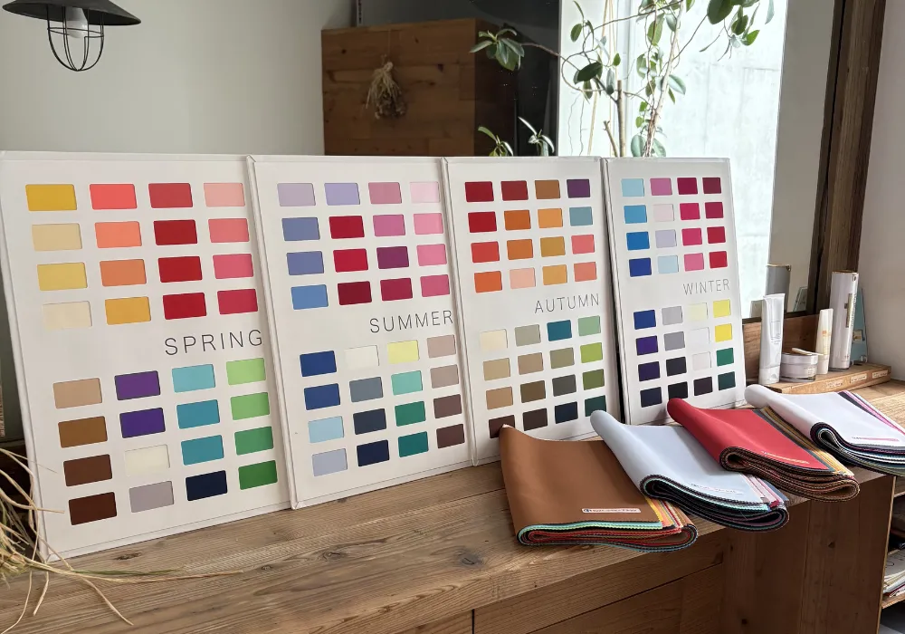 パーソナルカラー診断を受けてくださったお客様限定で、ミニドレープをご用意しています。4シーズンごとのカラーパレットがコンパクトにまとまっており、持ち歩きにも便利。お買い物やコスメ選びの際に、すぐに色を確認できるのでとても実用的です。