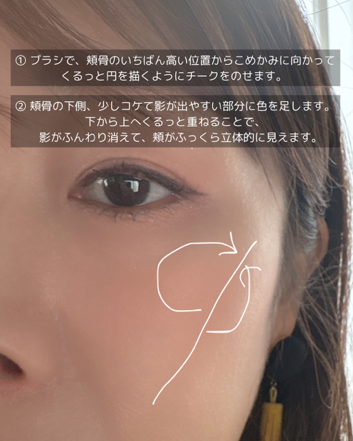 白を多く含んだ明るめチークが実はおすすめなんです。